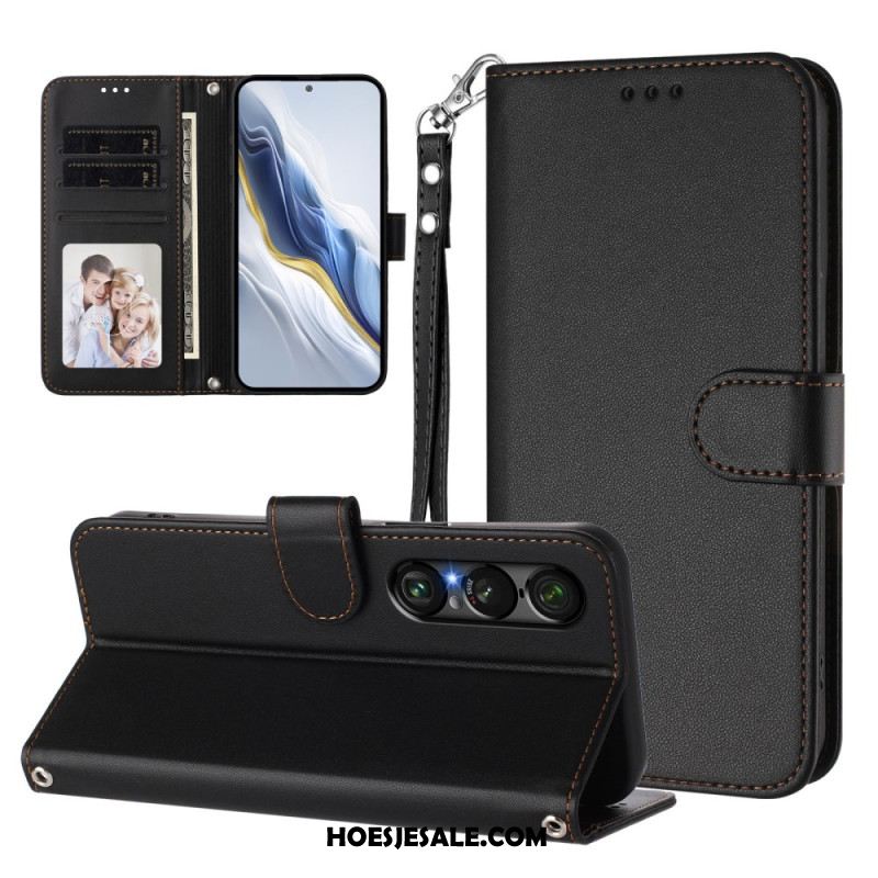 Flip Case Leren Sony Xperia 1 Vii Rfid-bescherming En Bandje