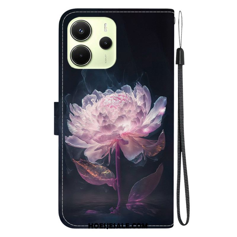 Leren Hoesje Voor Xiaomi Redmi Note 14 4g Blauw Bloemenpatroon