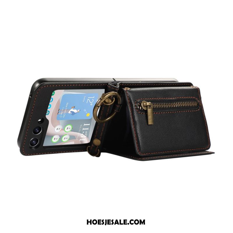 Cover Hoesje Samsung Galaxy Z Flip 7 Fe Telefoonhoesje Portemonnee Met Rits En Schouderband