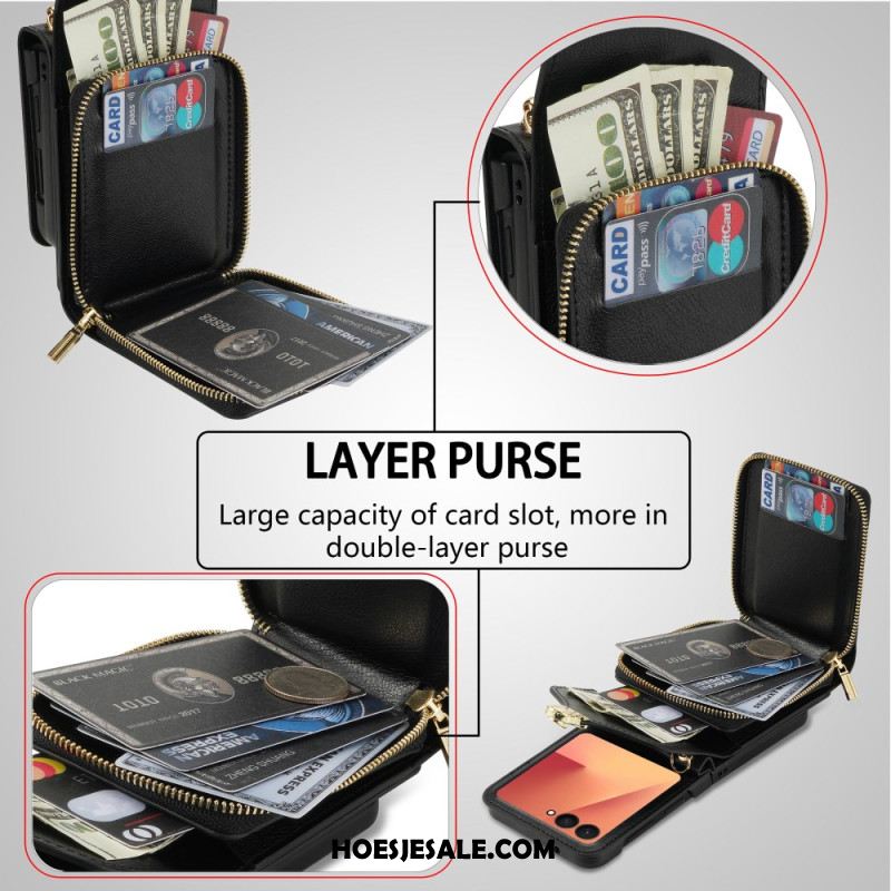 Hoesje Samsung Galaxy Z Flip 7 Gewatteerde Portemonnee En Riem