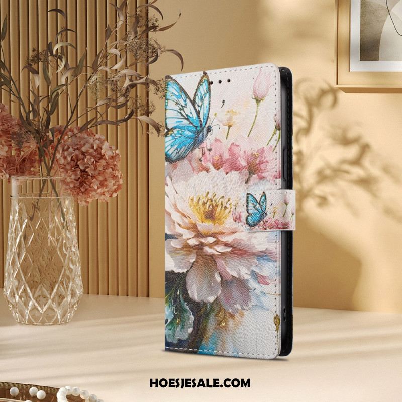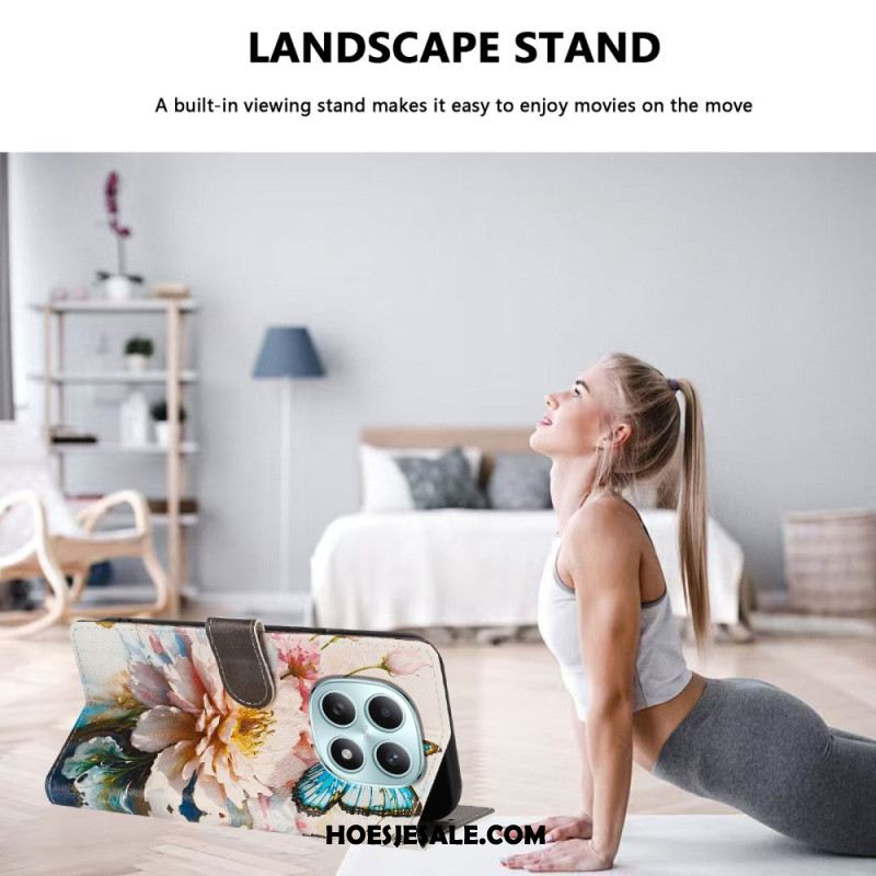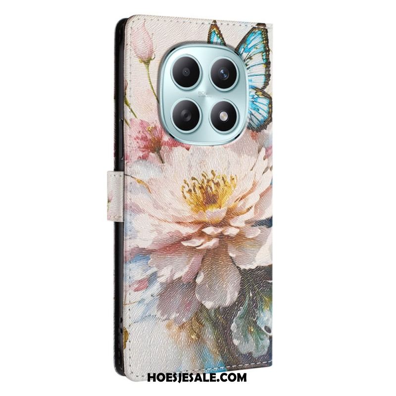 Leren Hoesje Voor Xiaomi Redmi Note 15 5g Parelmoerroze Vlinder