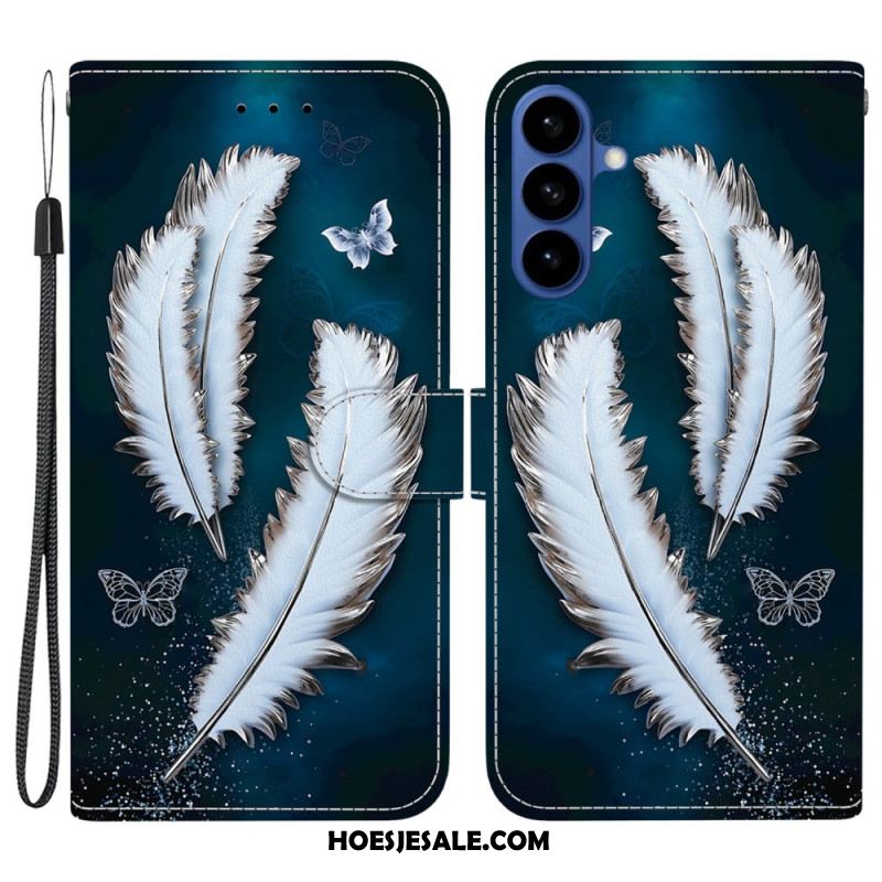 Folio-hoesje Samsung Galaxy S26 Telefoonhoesje Witte Veren