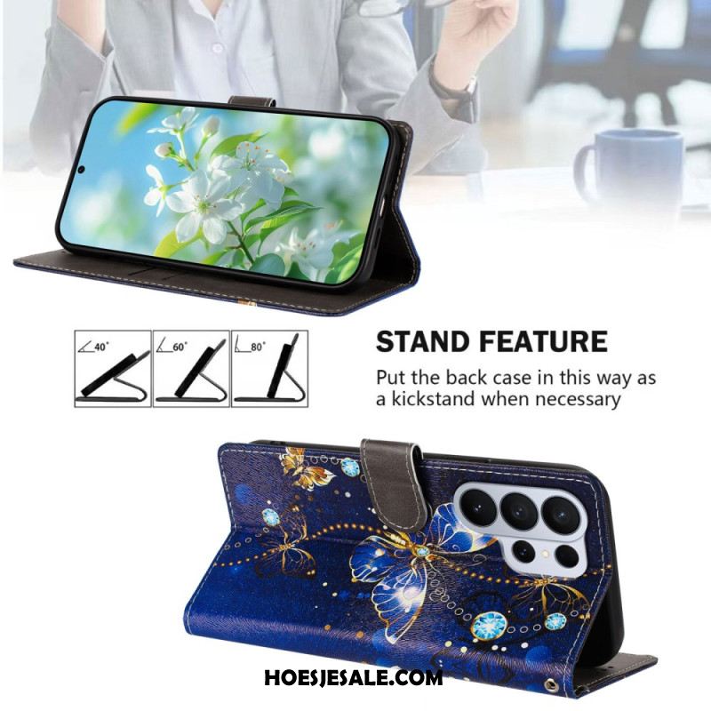 Flip Case Leren Samsung Galaxy S26 Ultra Gewatteerd Met Bandje
