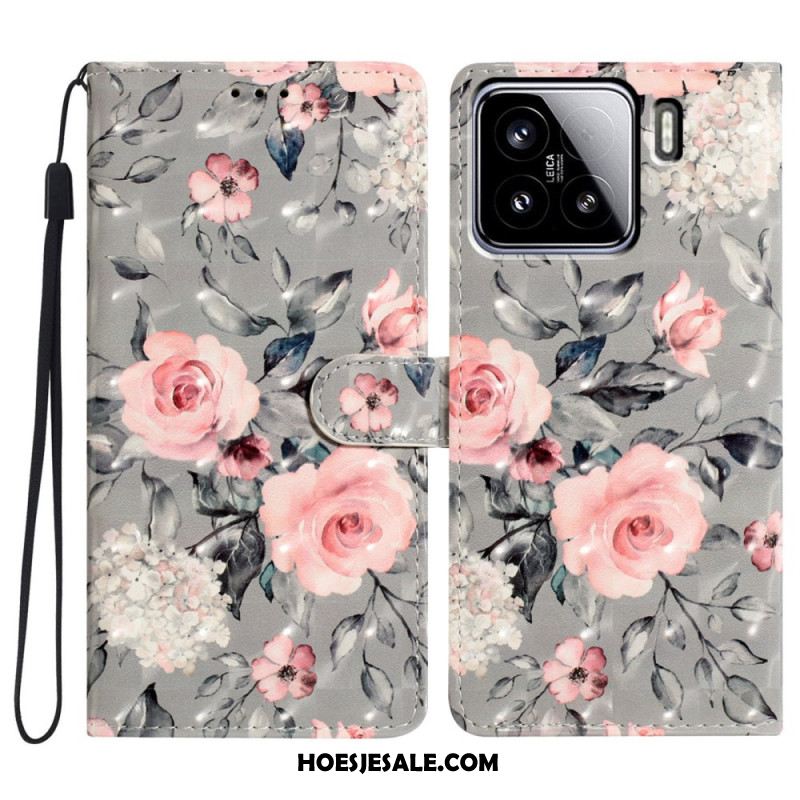 Flip Case Leren Xiaomi 15 Gouden Pioenroos