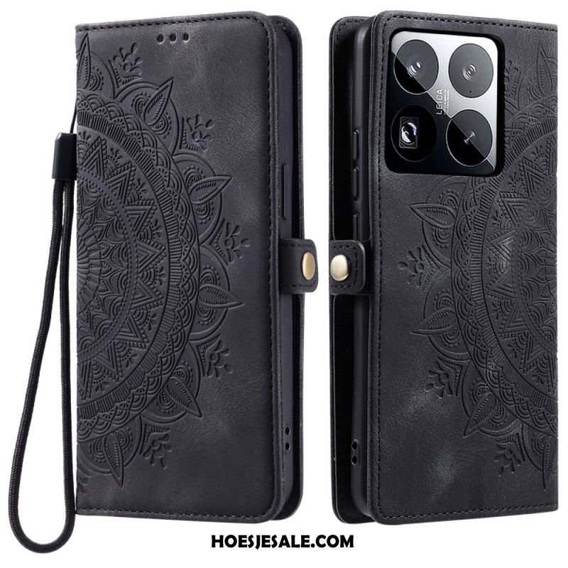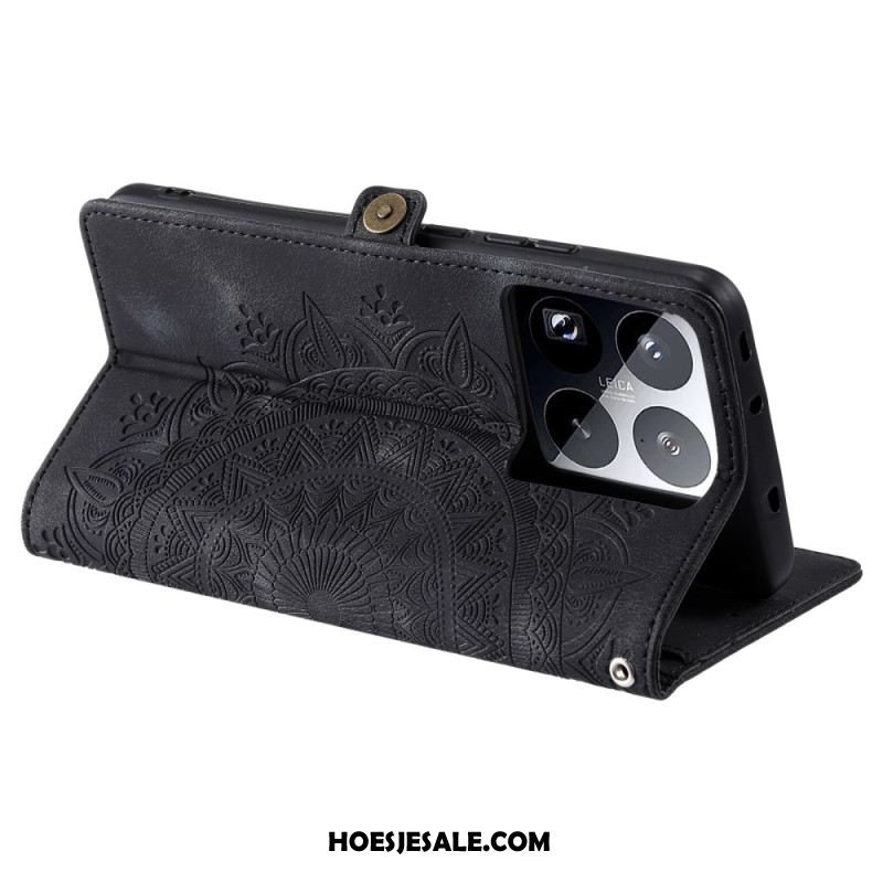 Leren Hoesje Xiaomi 15 Pro Bandje Met Vlinderprint