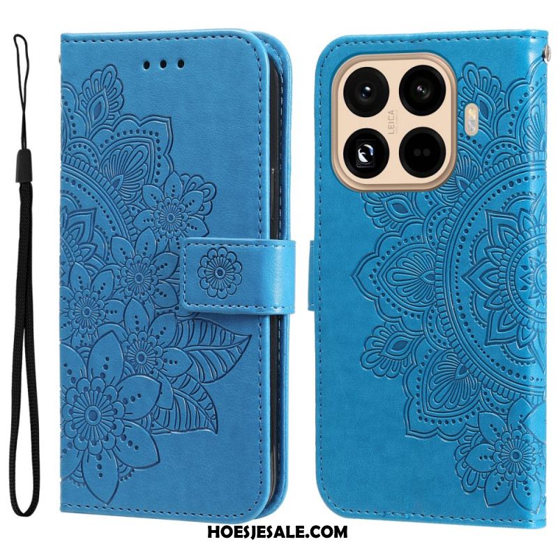 Flip Case Leren Xiaomi 15t Pro Bloemenpatroon Met Bandje
