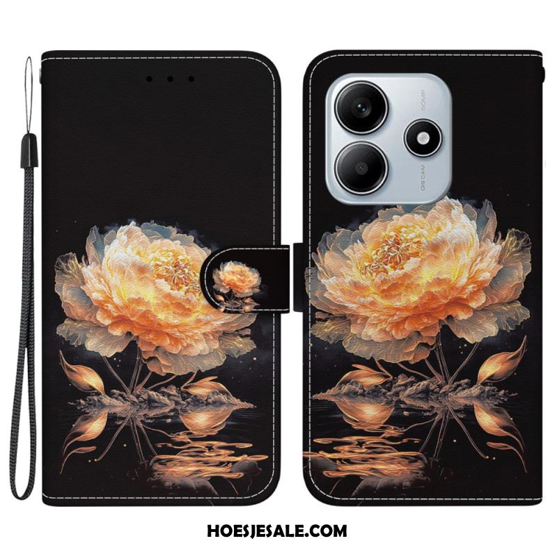 Flip Case Leren Xiaomi Redmi Note 14 5g Roze Bloem