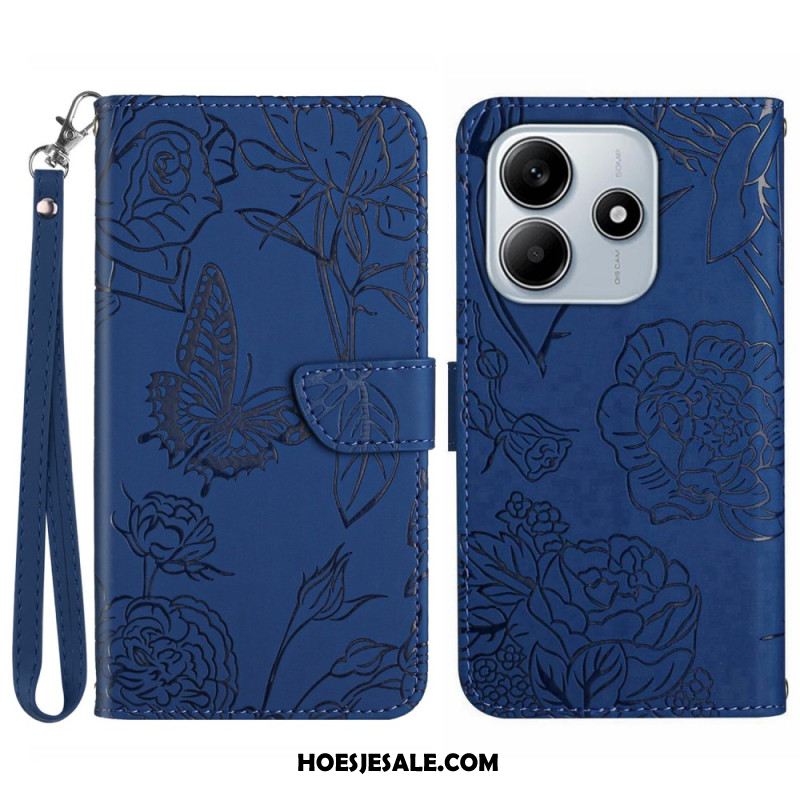 Folio-hoesje Xiaomi Redmi Note 14 5g Telefoonhoesje Vlinderprint Met Bandje
