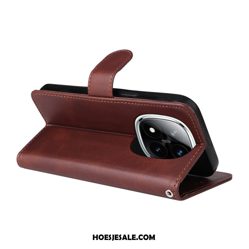 Folio-hoesje Xiaomi Redmi Note 14 Pro Plus 5g Effen Leerlook Met Bandje