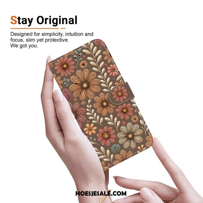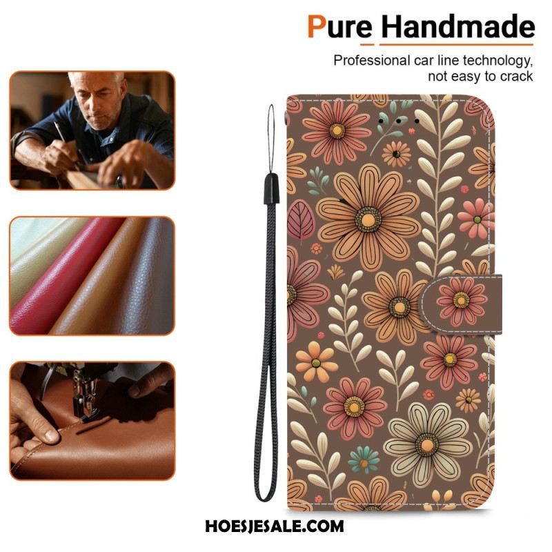 Folio-hoesje Xiaomi Redmi Note 15 5g Telefoonhoesje Bruine Bloemen