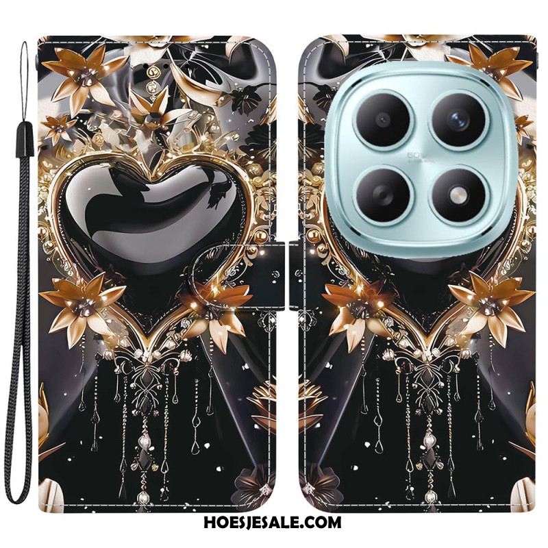Folio-hoesje Xiaomi Redmi Note 15 5g Telefoonhoesje Zwart En Goud Hart