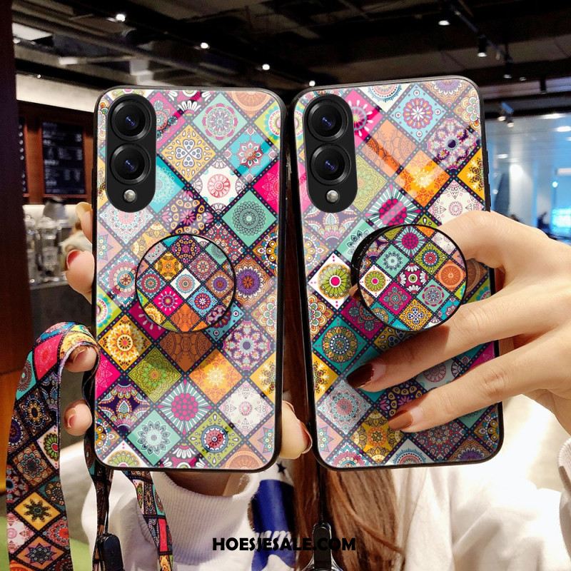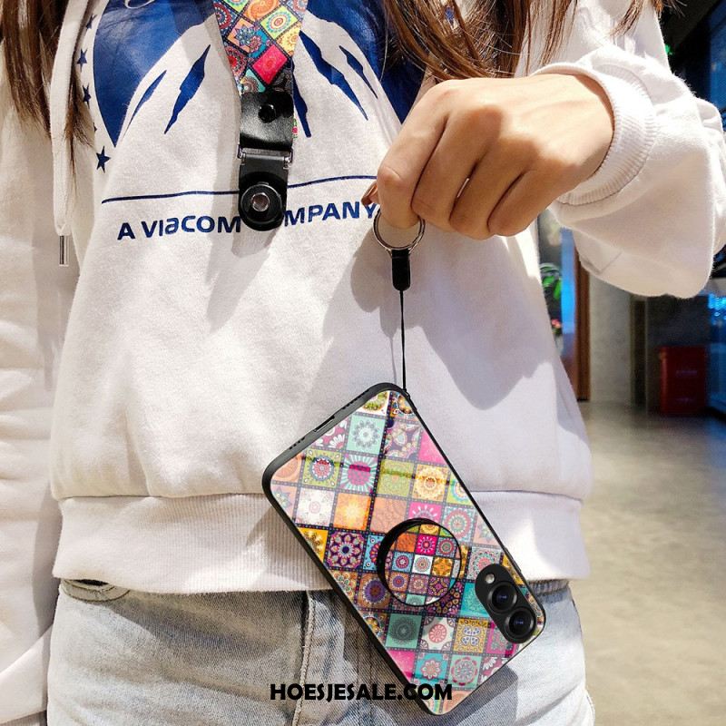 Hoesje Samsung Galaxy S25 5g Edge Standaard Met Patchworkpatroon En Draagkoord