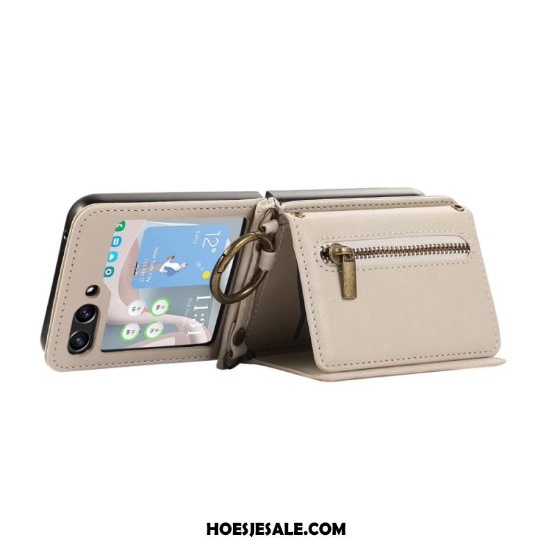 Cover Hoesje Samsung Galaxy Z Flip 7 Telefoonhoesje Portemonnee Met Rits En Schouderriem