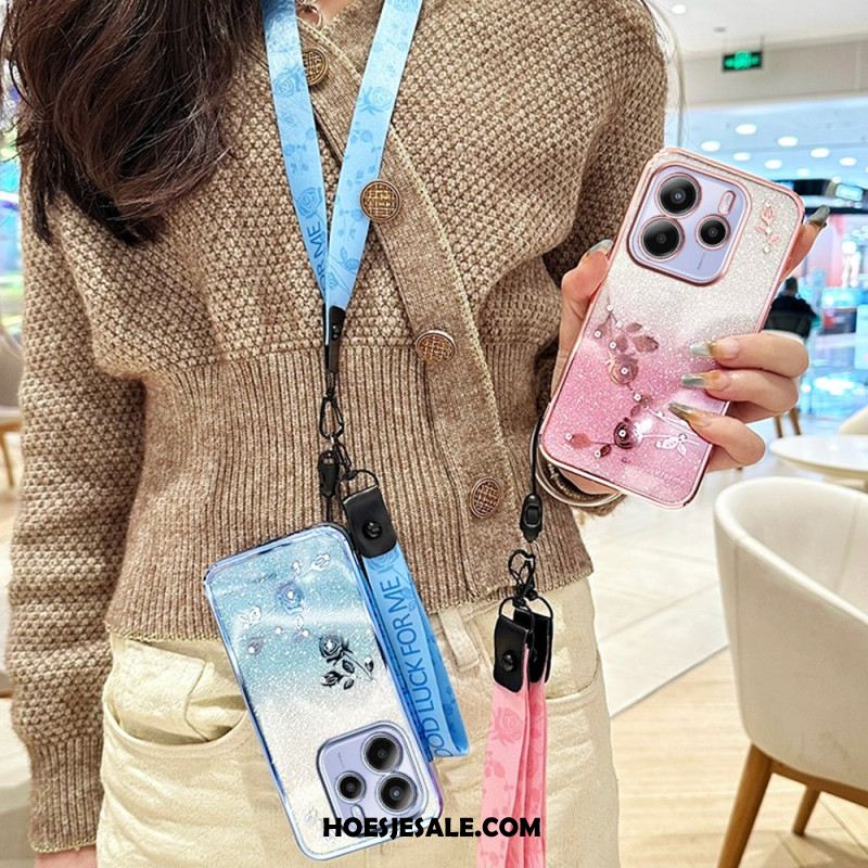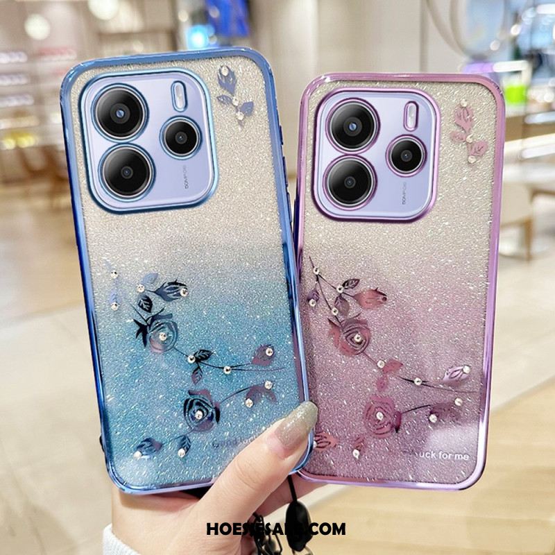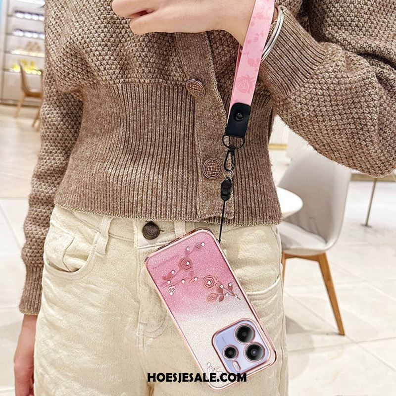 Leren Hoesje Voor Xiaomi Redmi Note 14 4g Roze Bloem