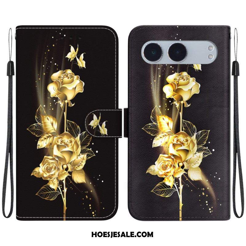 Flip Case Leren Oneplus Nord 4 Aquarel Bloemen Sleutelkoord