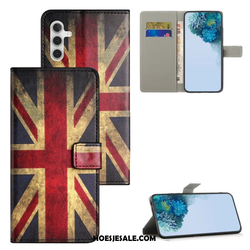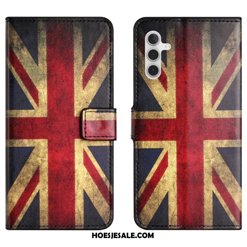 Leren Hoesje Samsung Galaxy S25 Fe Vintage Britse Vlag Bescherming Hoesje