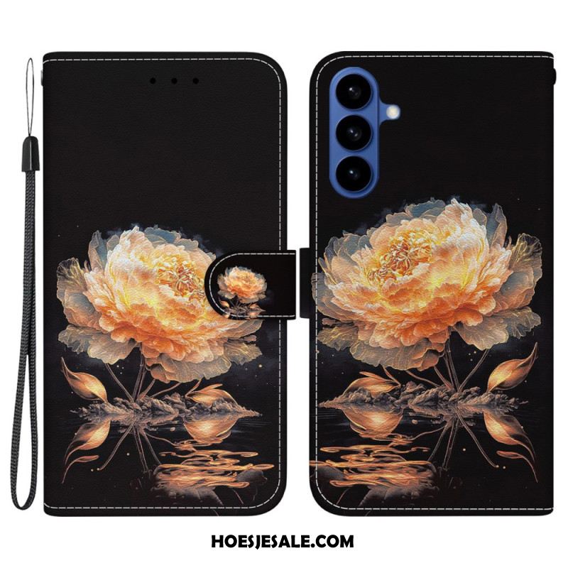 Leren Hoesje Samsung Galaxy S26 Gouden Pioenroos Bescherming Hoesje