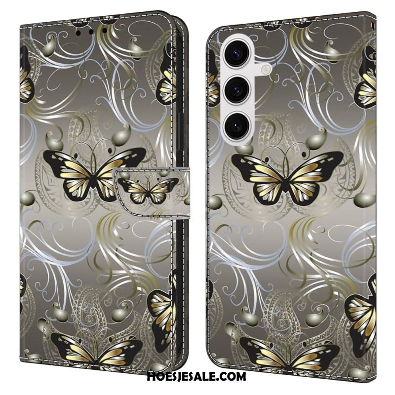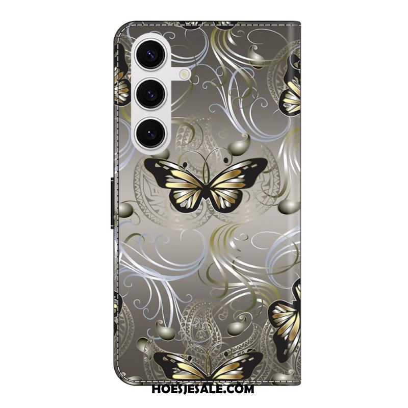 Leren Hoesje Voor Samsung Galaxy S26 Plus Roze Bloemenvlinders