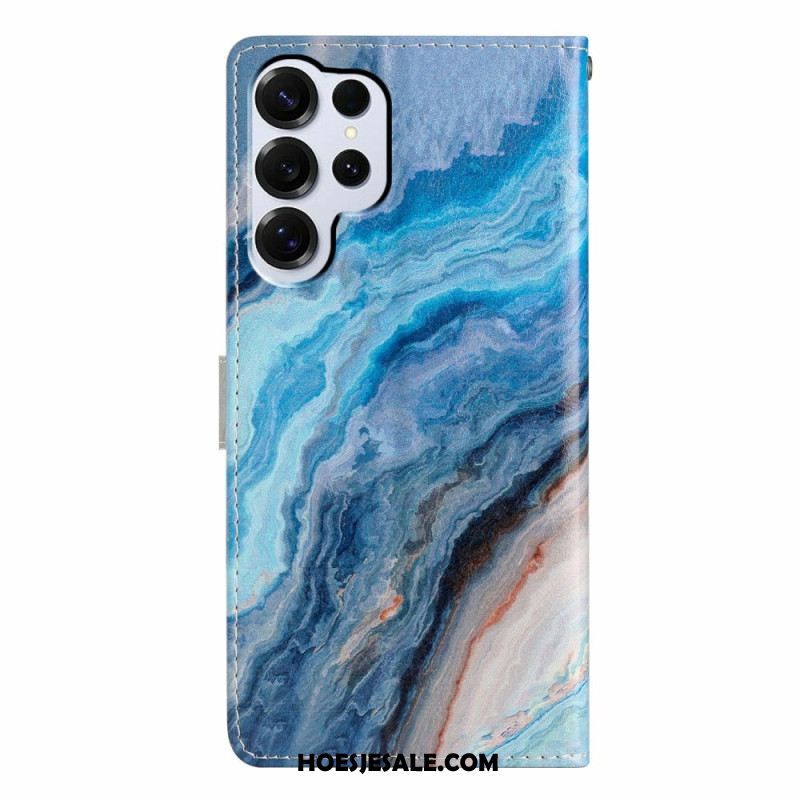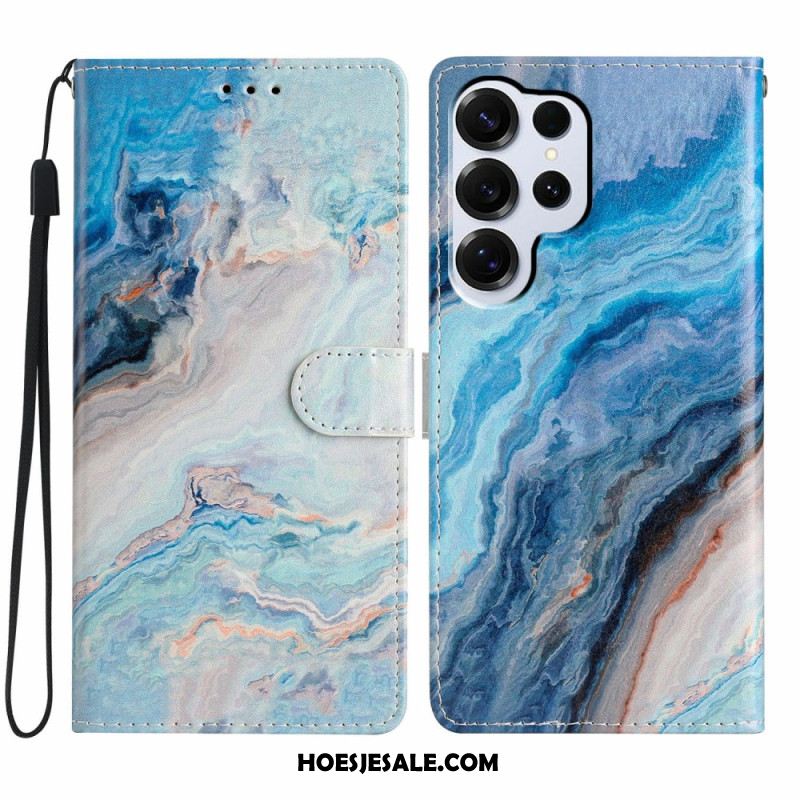 Leren Hoesje Samsung Galaxy S26 Ultra Blauw Marmer Bescherming Hoesje