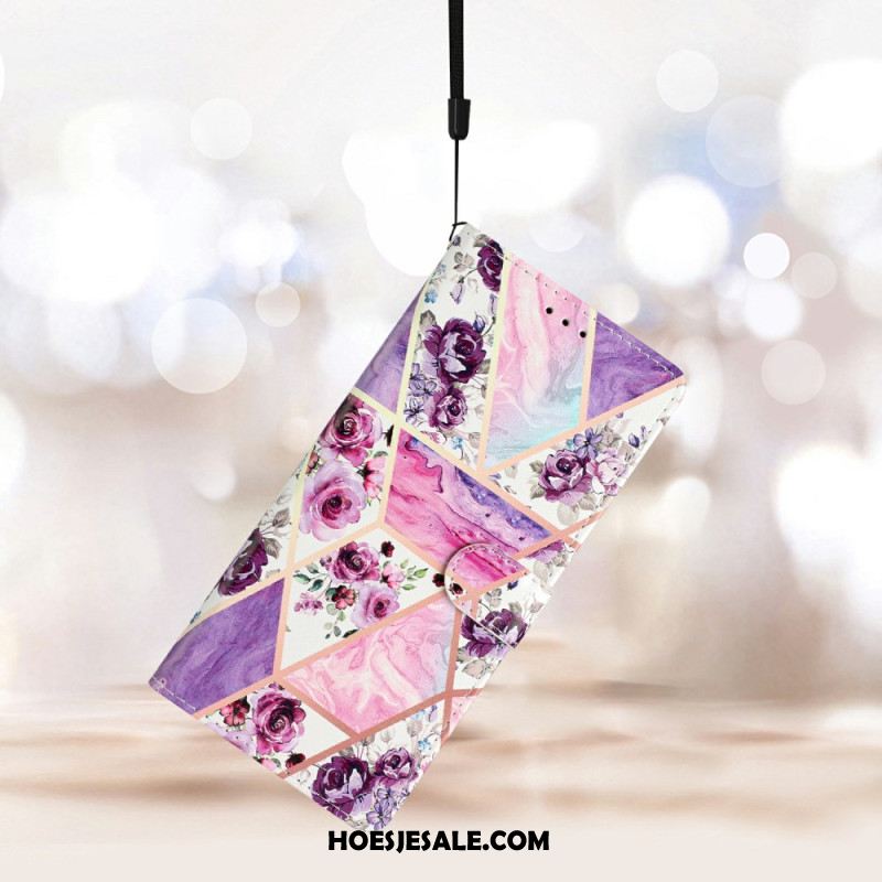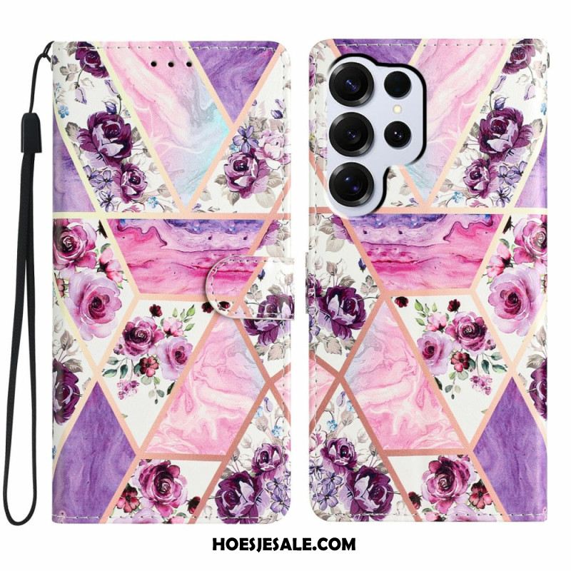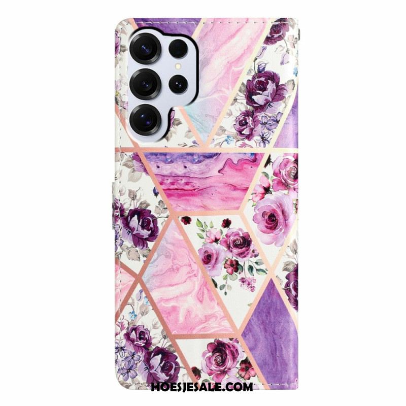 Flip Case Leren Samsung Galaxy S26 Ultra Groen En Roze Marmer