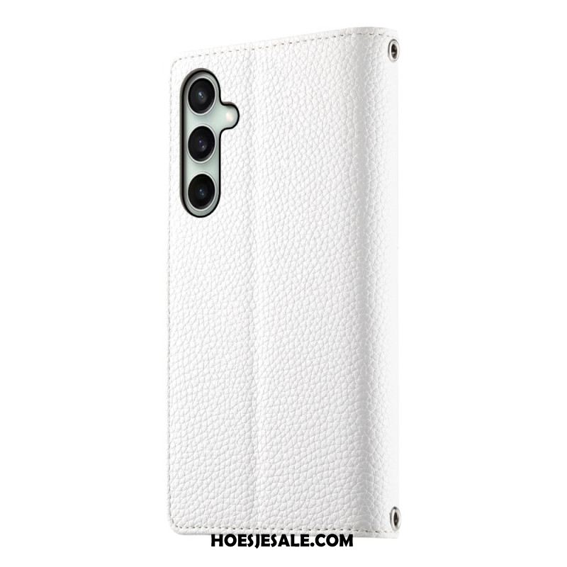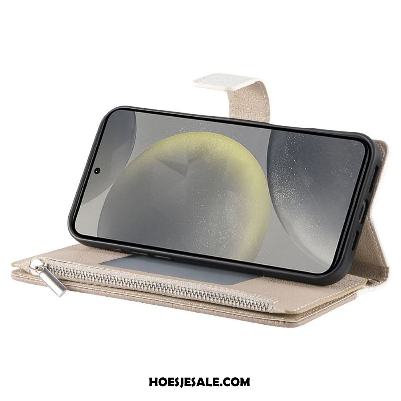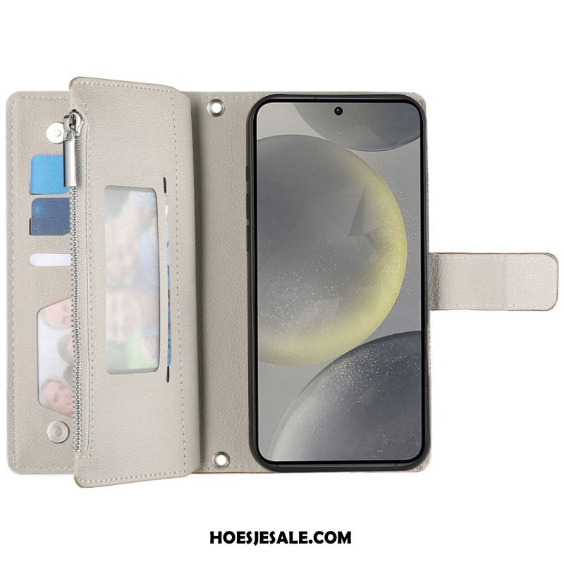Leren Hoesje Voor Samsung Galaxy S25 Fe Leren Portemonnee Met Ritssluiting En Riempjes