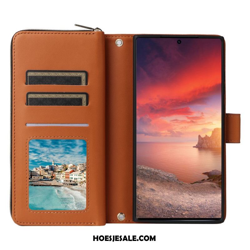 Leren Hoesje Voor Samsung Galaxy S25 Ultra 5g 9 Kaartsleuven Met Bandje