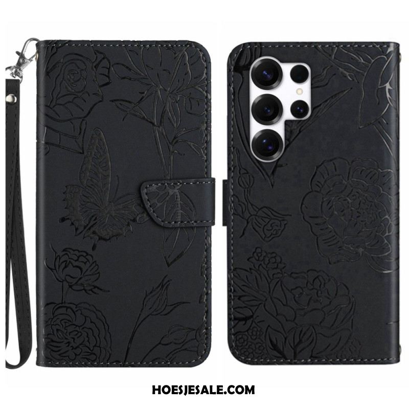 Leren Hoesje Samsung Galaxy S26 Ultra Bloemen Met Vlinders