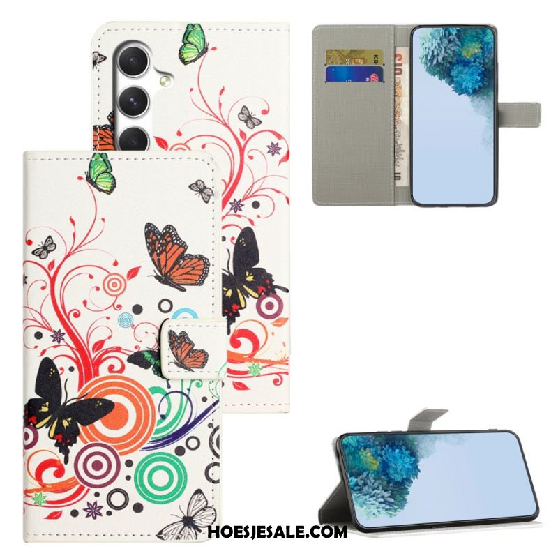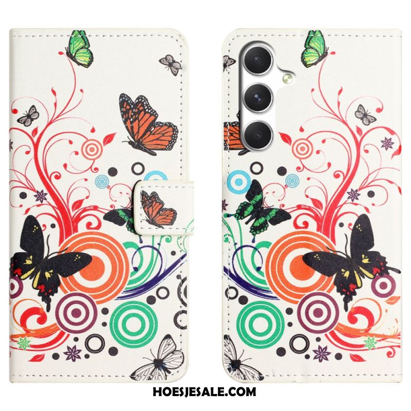 Leren Hoesje Voor Samsung Galaxy S26 Witte Vlinders