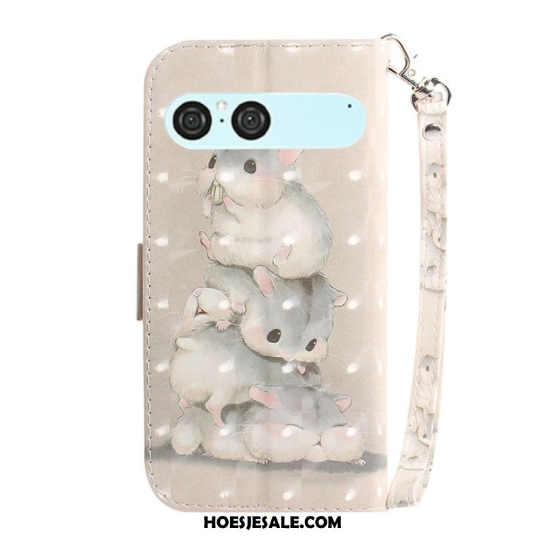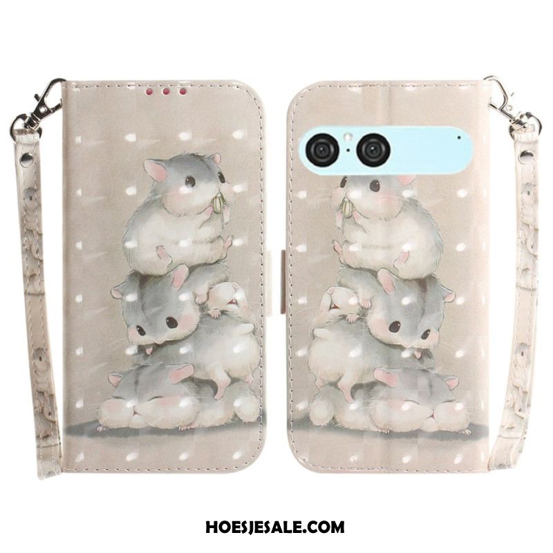Leren Hoesje Voor Sony Xperia 10 Vii Sleutelkoord Met Hamsters