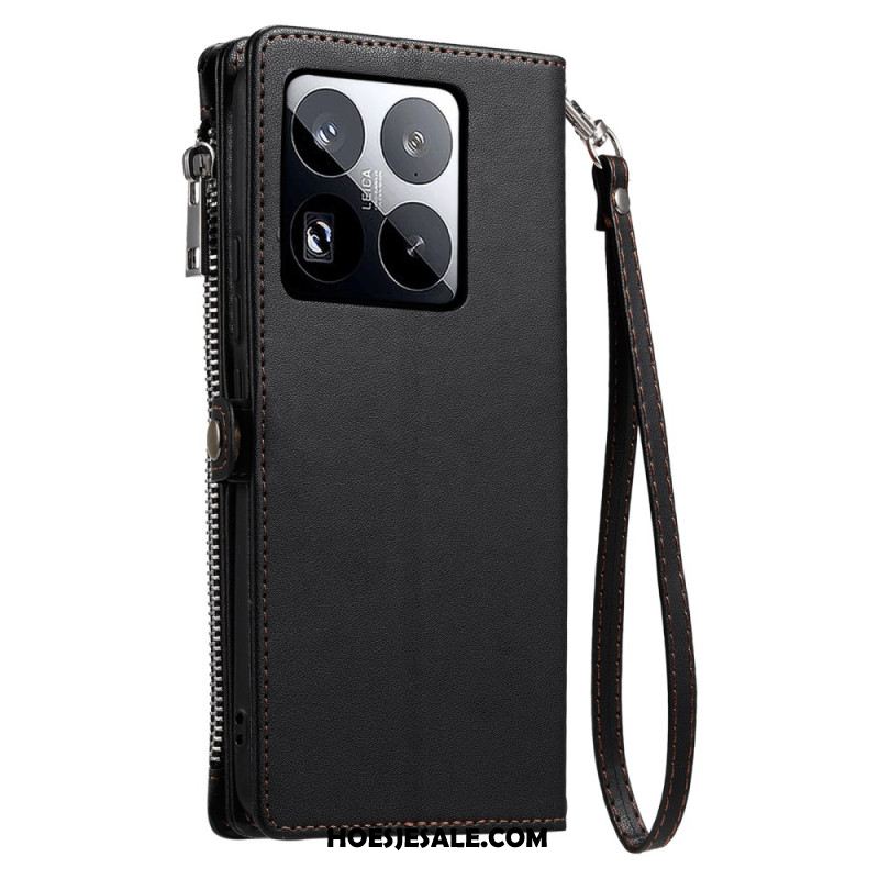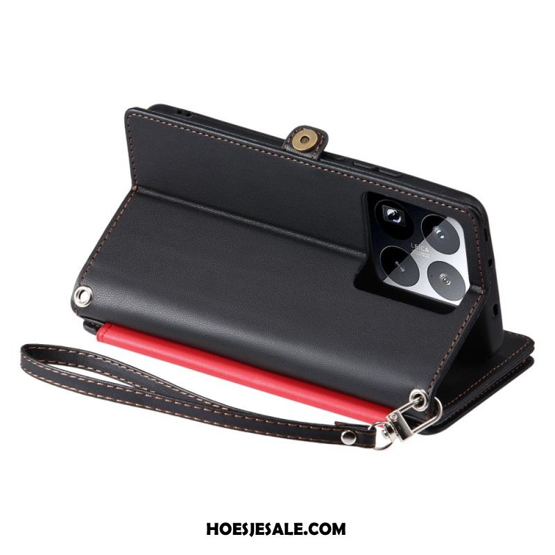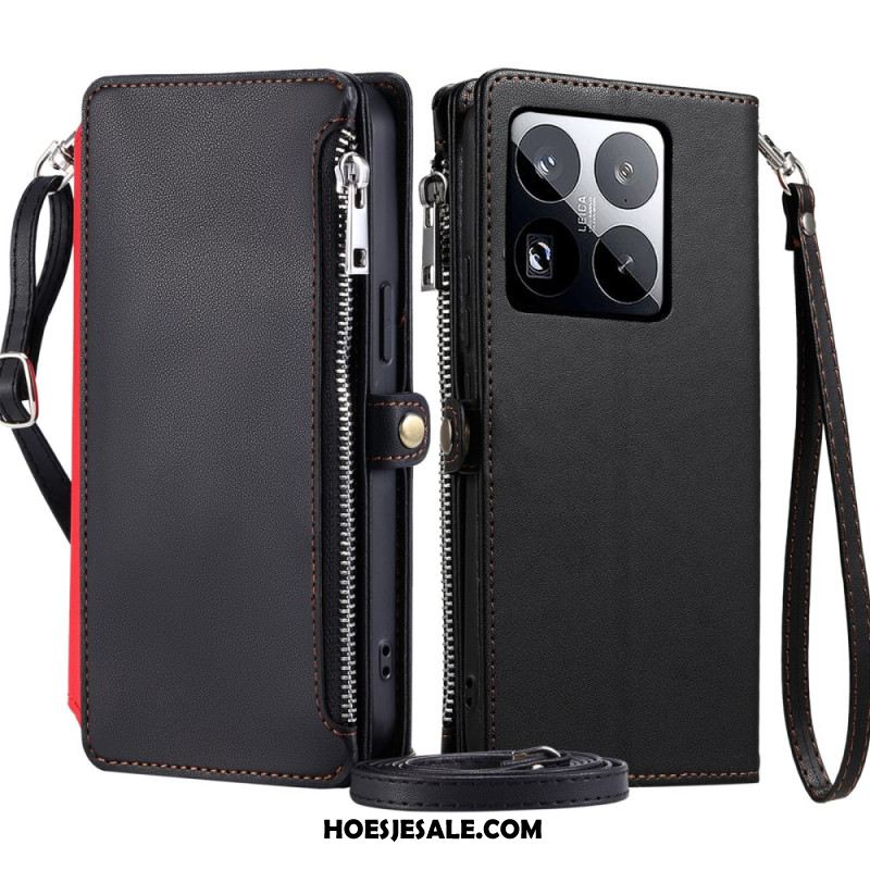 Leren Hoesje Voor Xiaomi 15 Pro Bandje Met Zonnebloemprint