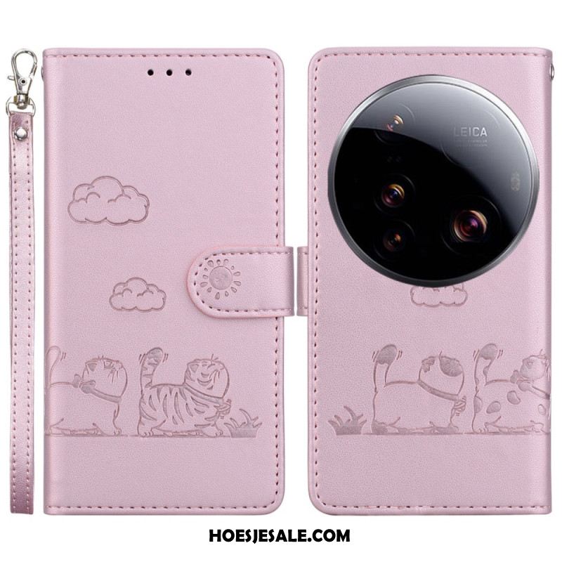 Flip Case Leren Xiaomi 15 Ultra Vlinderprint Bandje