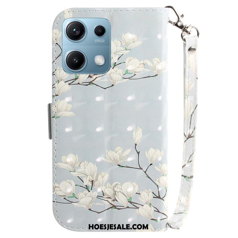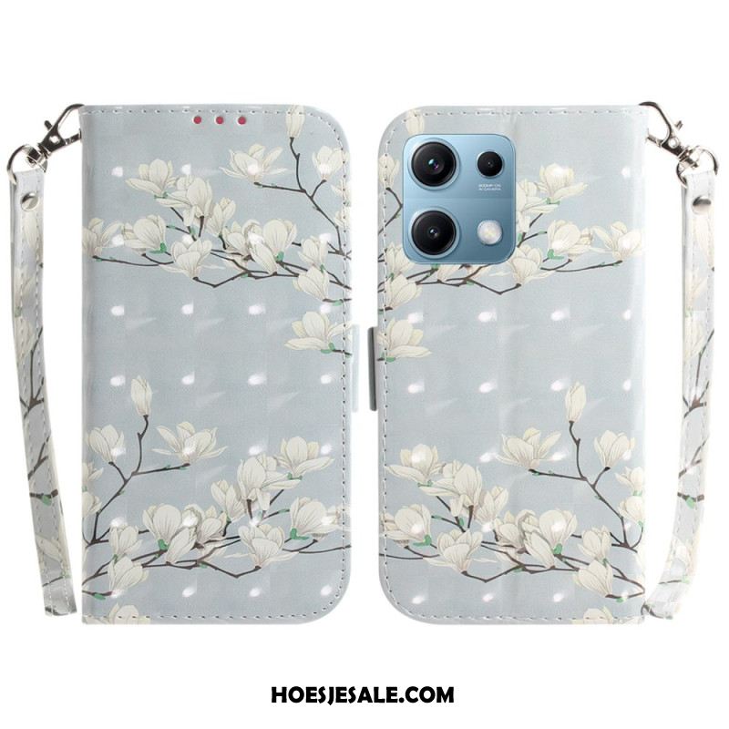 Leren Hoesje Voor Xiaomi Redmi Note 14s Magnolia's Met Koord