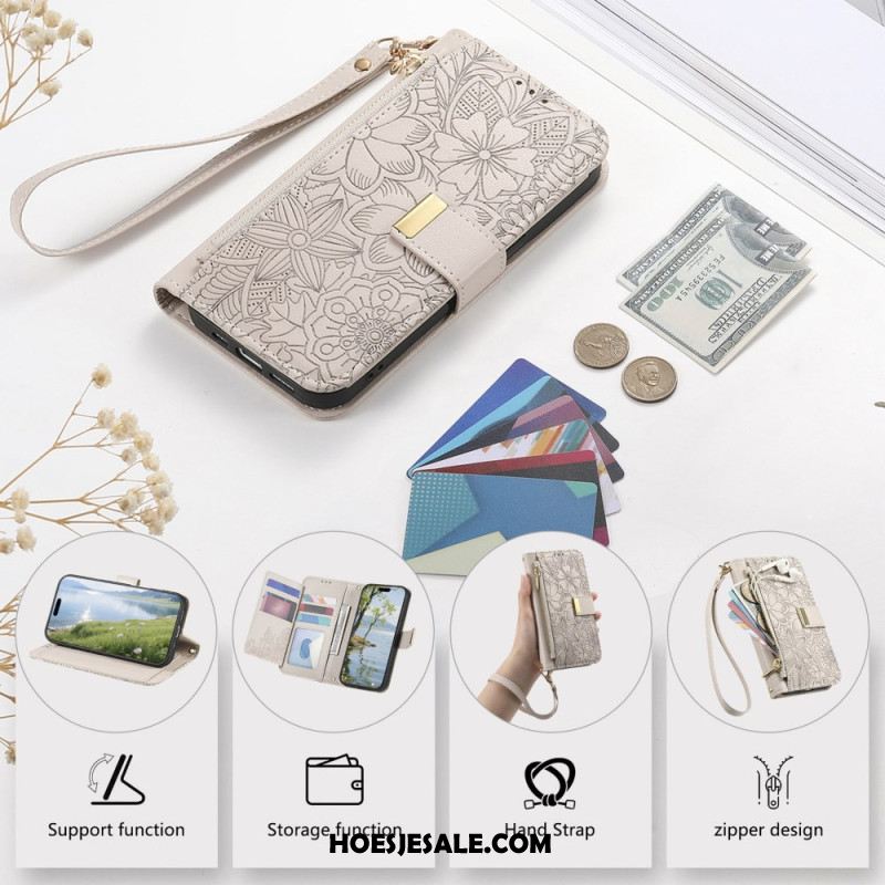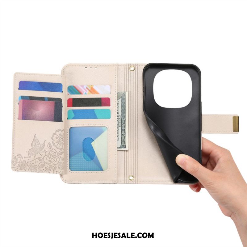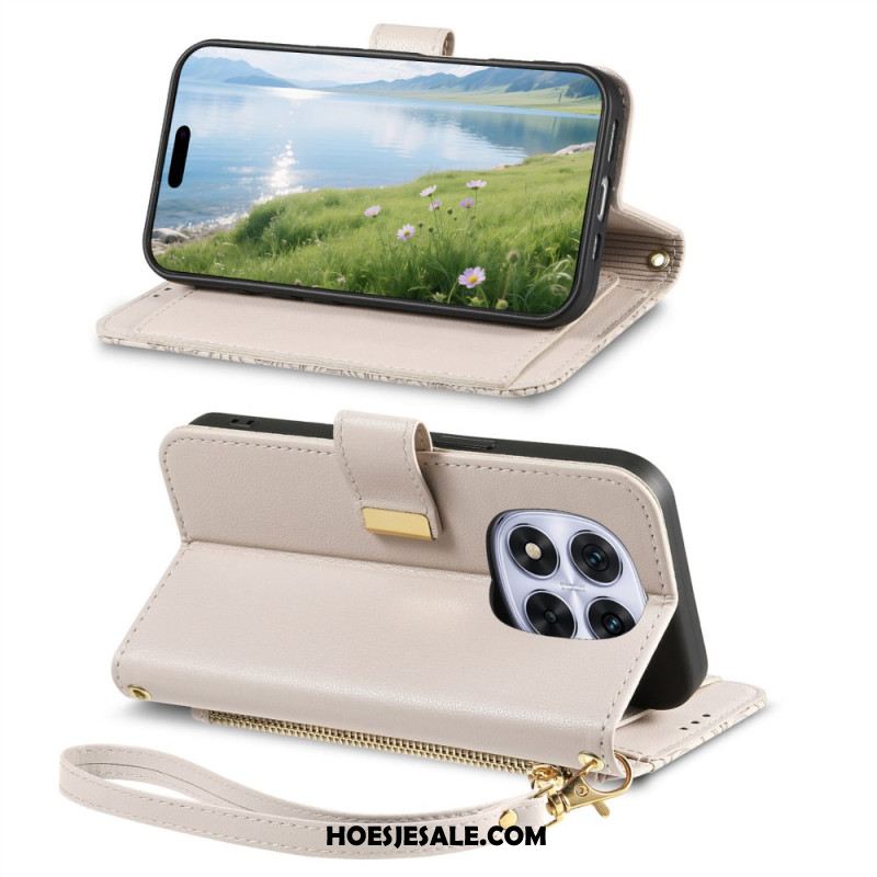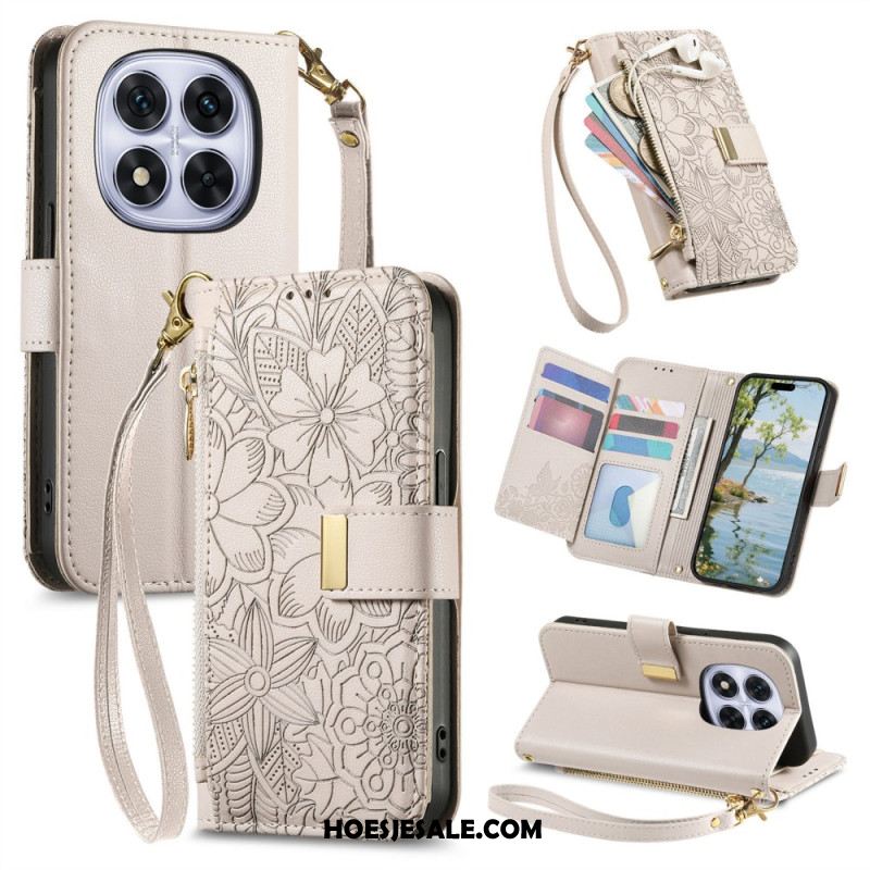 Leren Hoesje Voor Xiaomi Redmi Note 15 Pro Plus 5g Bloemenpatroon En Zakje Met Rits