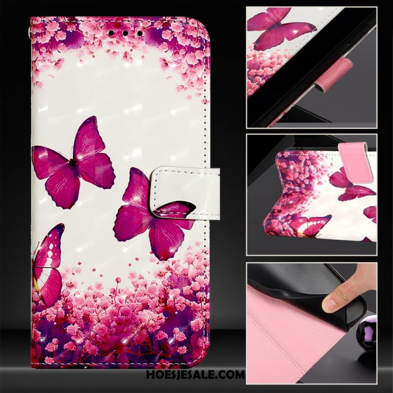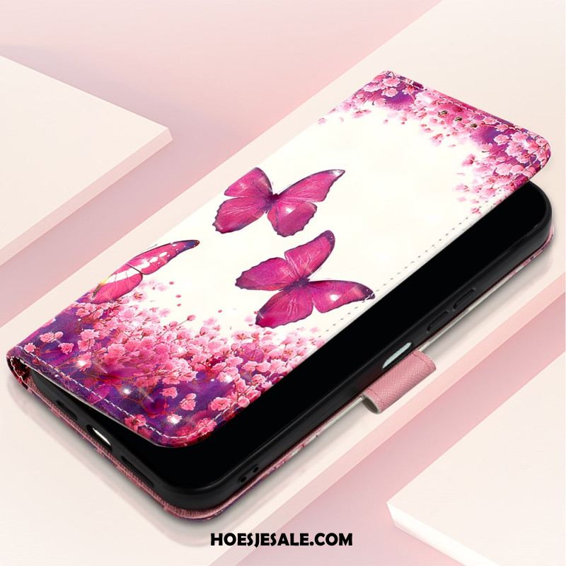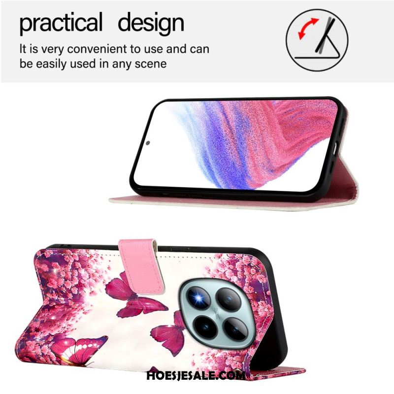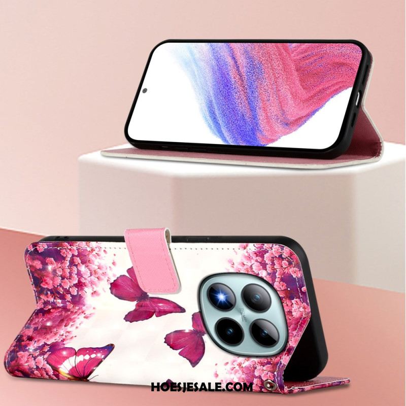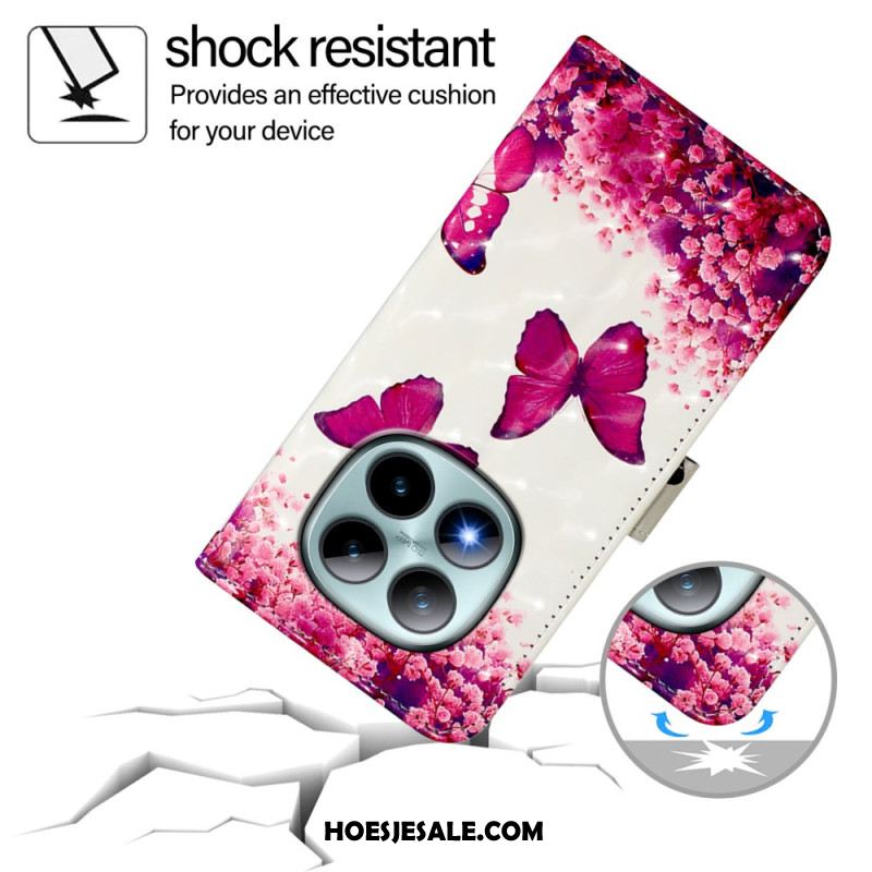 Leren Hoesje Voor Xiaomi Redmi Note 15 Pro Plus 5g Roze Vlinders