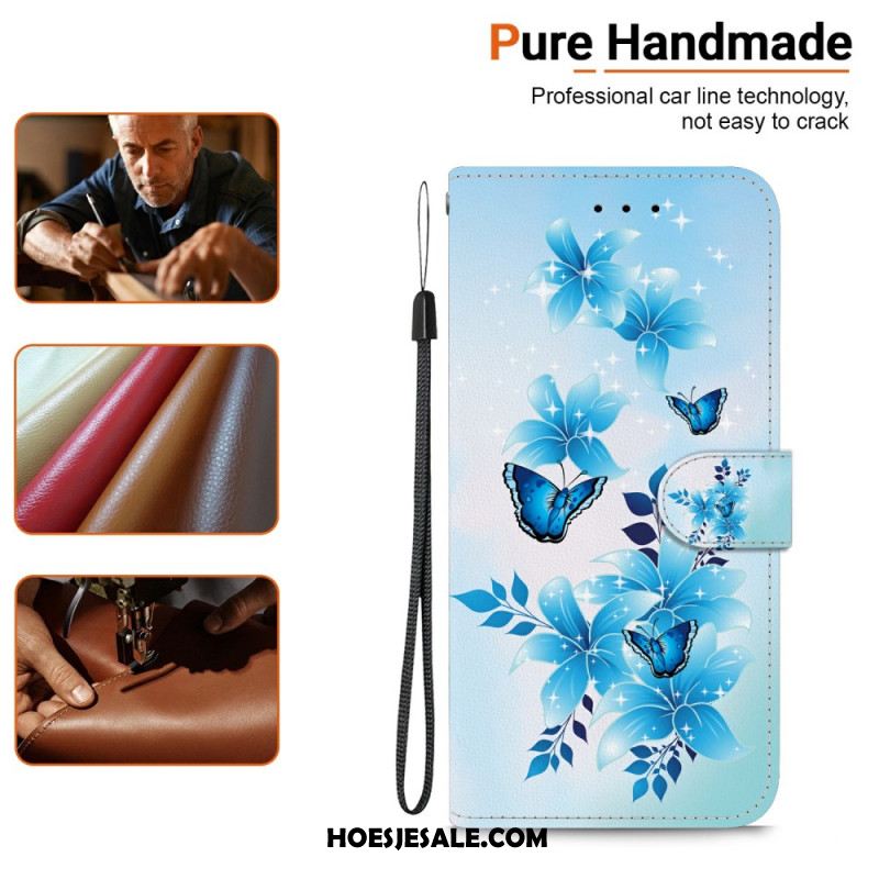 Leren Hoesje Xiaomi 15t Blauw Marmer Bescherming Hoesje