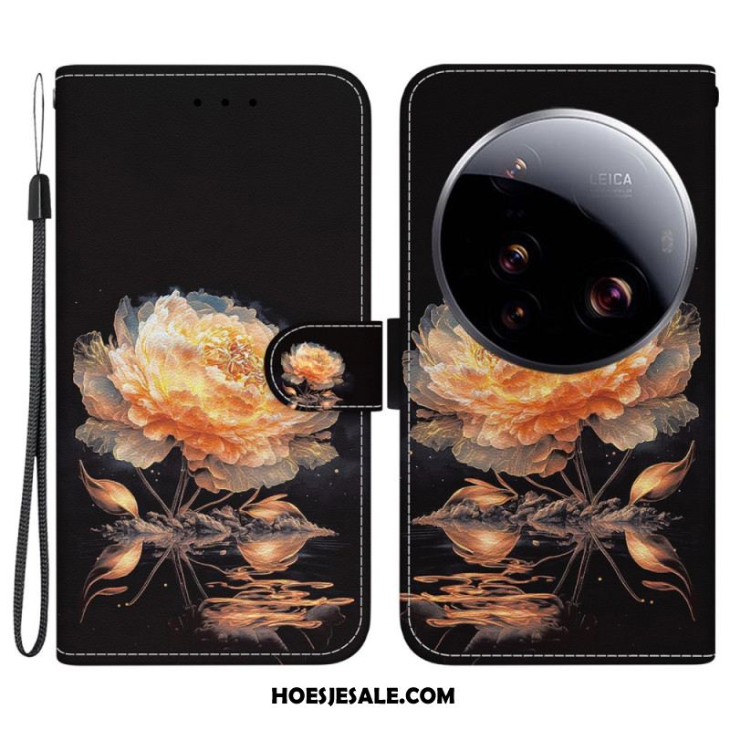 Leren Hoesje Xiaomi 15 Ultra Gouden Bloem Bescherming Hoesje