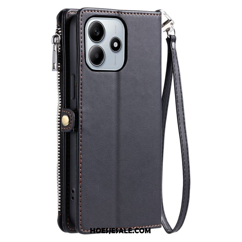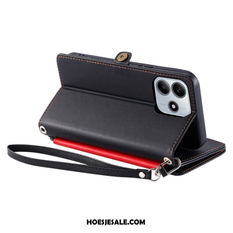 Leren Hoesje Xiaomi Redmi Note 14 5g Portemonnee Met Verstelbare Riem Bescherming Hoesje