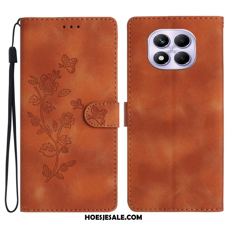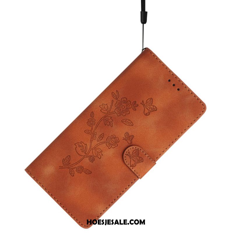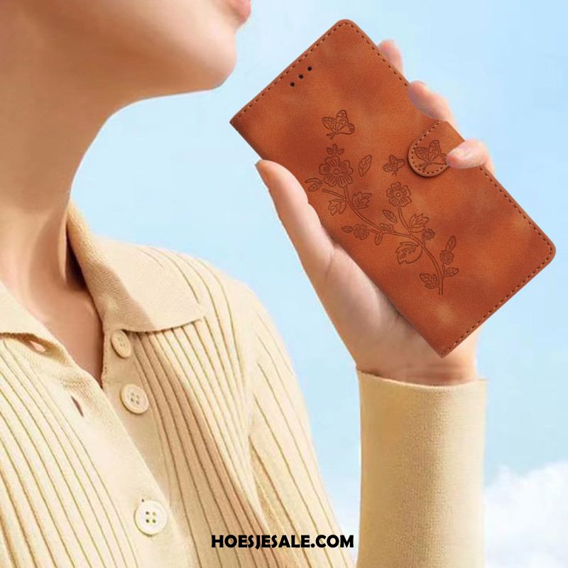 Leren Hoesje Xiaomi Redmi Note 14 Pro 4g Bloemen- En Vlinderdesign Bescherming Hoesje
