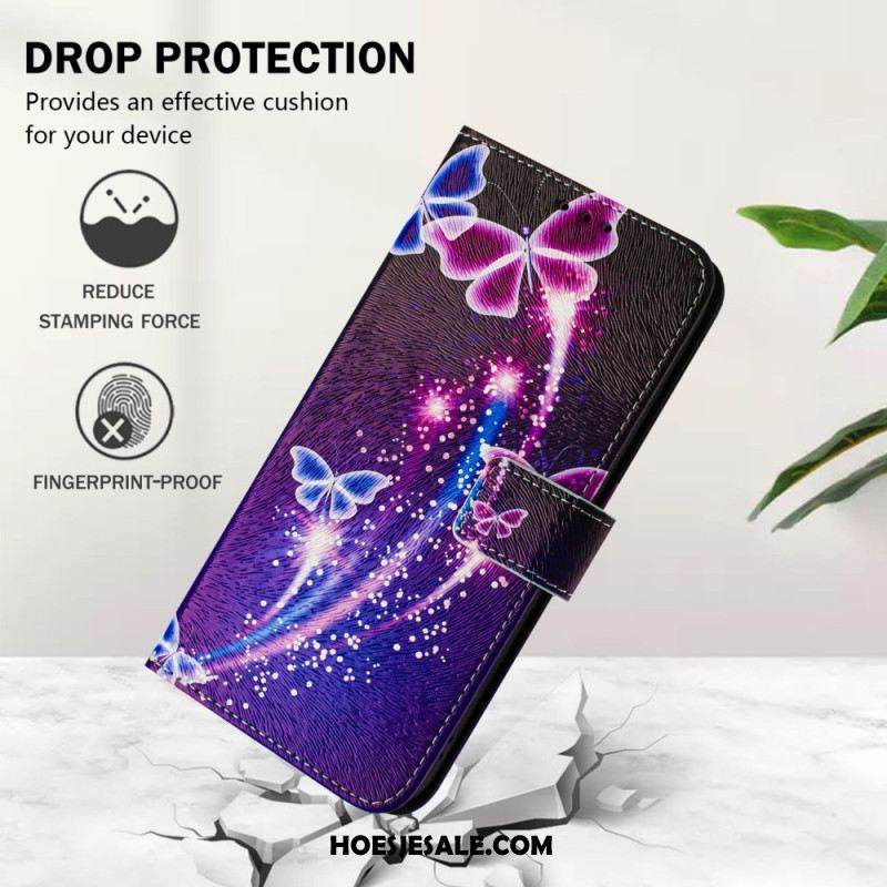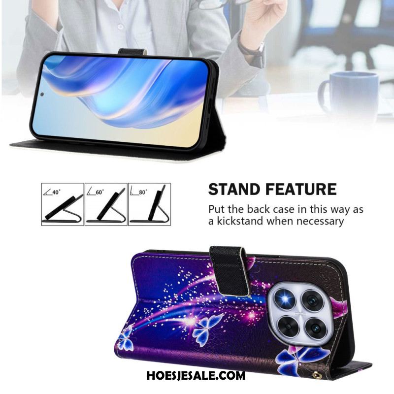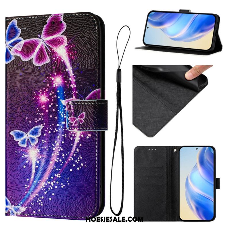 Folio-hoesje Xiaomi Redmi Note 14 Pro Plus 5g Vlinderprint Met Bandje