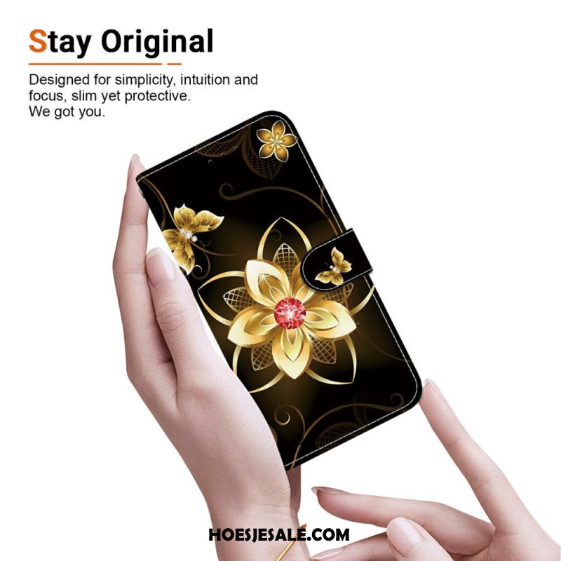 Leren Hoesje Xiaomi Redmi Note 15 5g Gouden Bloem Bescherming Hoesje