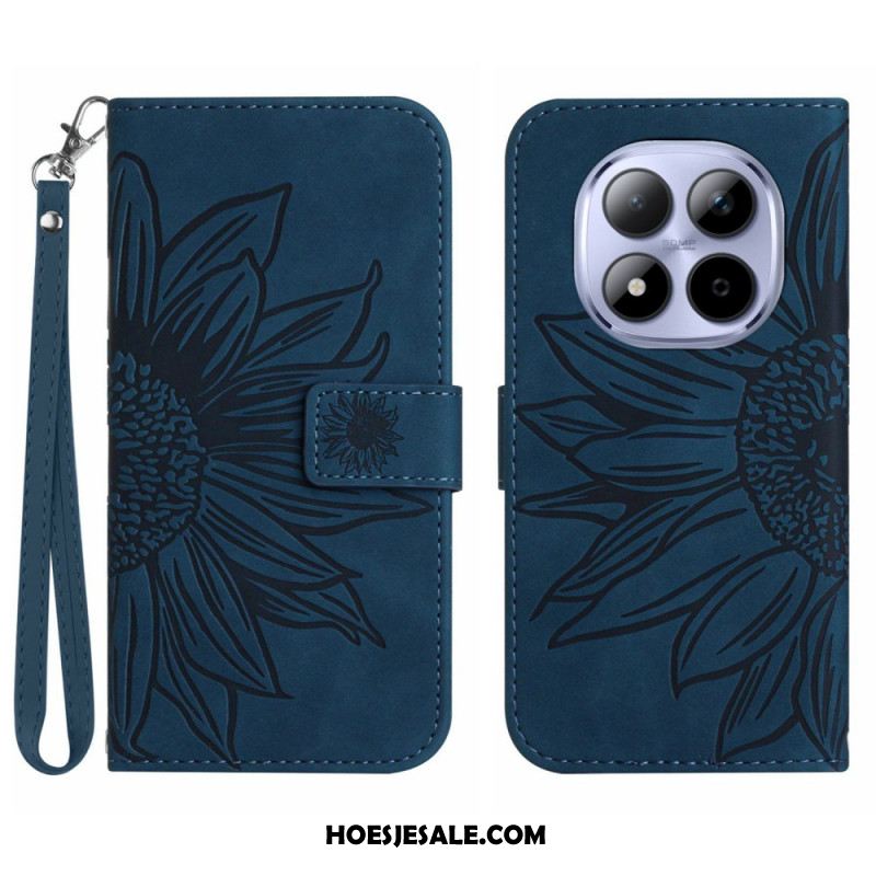 Leren Hoesje Xiaomi Redmi Note 15 Pro 5g Zonnebloemprint Met Bandje Bescherming Hoesje
