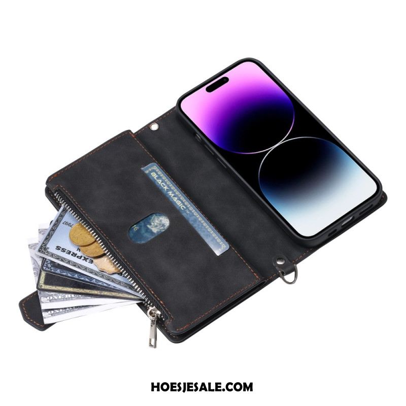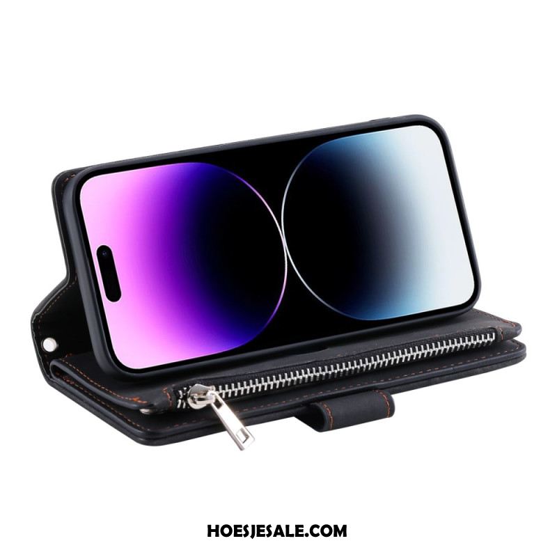 Leren Hoesje iPhone 17 Portemonnee Met Schouderband En Spiegel