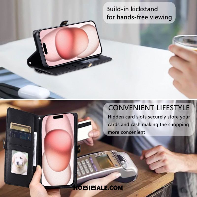 Leren Hoesje Voor iPhone 17 Pro Max Portemonnee Met Ritsvak